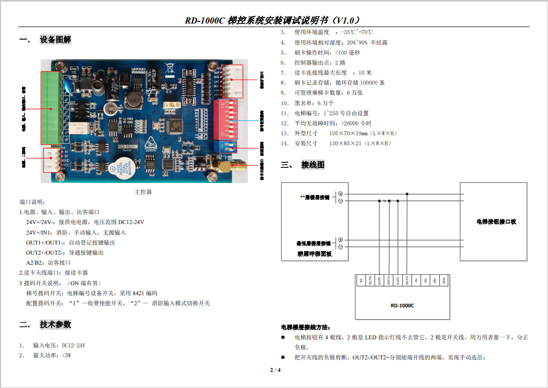 RD-2000A 梯控系統(tǒng)安裝調(diào)試說(shuō)明書(shū)(V1.1)
